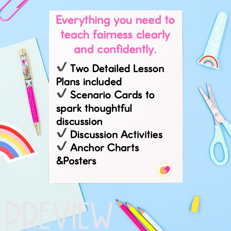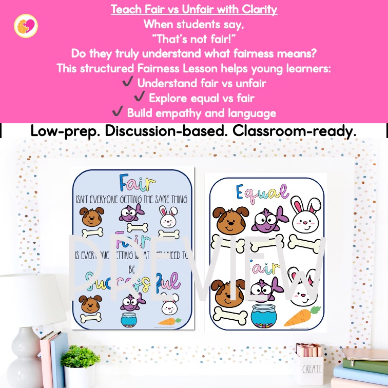 • 2 detailed lesson plans (Fair vs Unfair & Equal vs Fair)